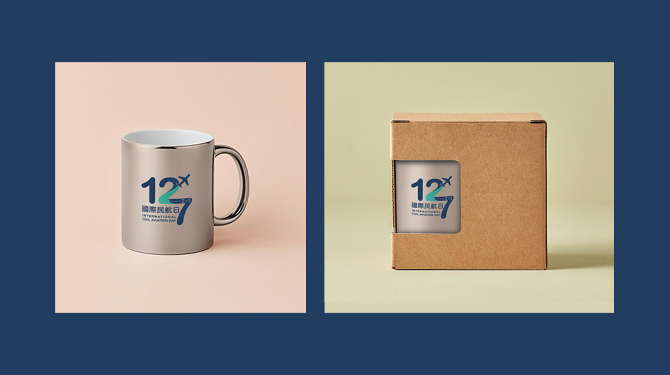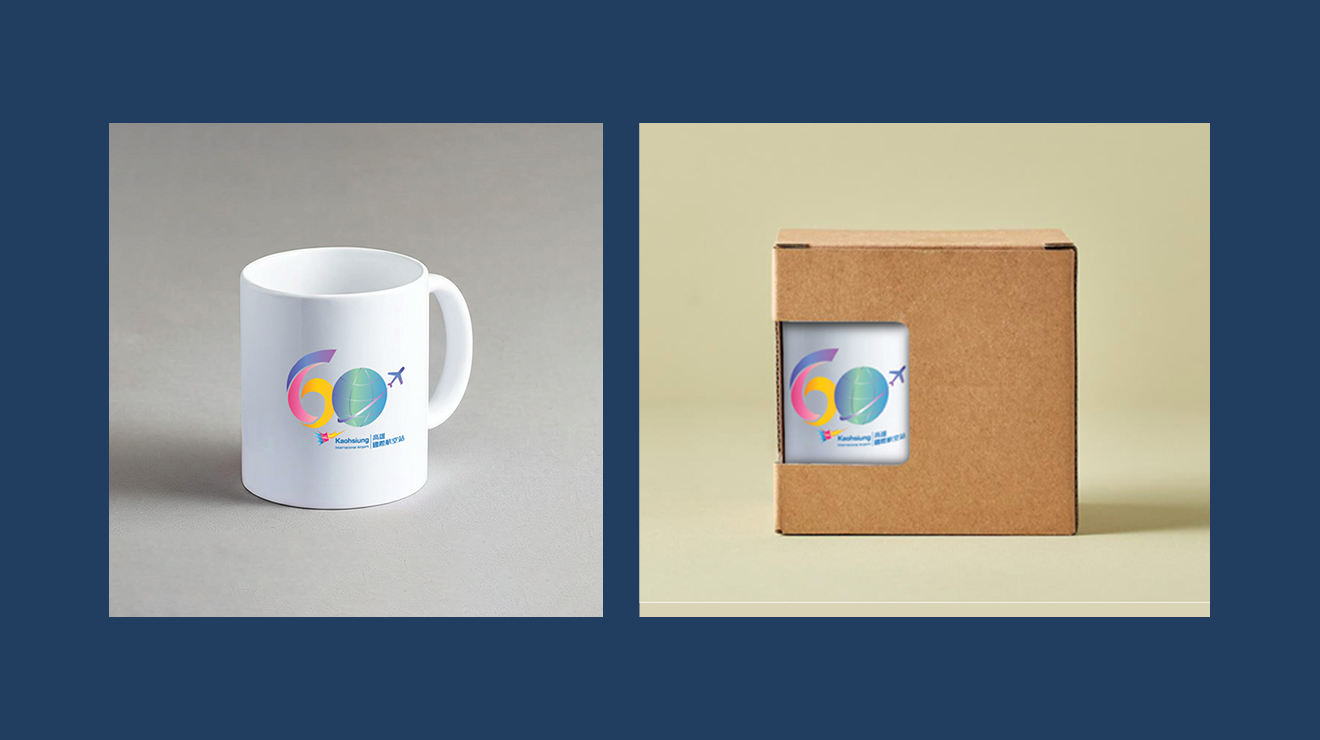 因為本案正在規劃與製作「民航局所屬機場建築與公共藝術」展示平台,我們也同步延伸視覺系統,設計一款「國際民航日」專屬識別 Logo 與紀念馬克杯,作為主題活動與平台推廣的延伸應用。 此外,也特別呼應高雄機場即將邁入 60 週年這個重要里程碑,額外為高雄機場量身設計一款紀念版馬克杯,讓整體視覺從線上平台延伸到實體周邊,共同強化品牌記憶與民航意象。