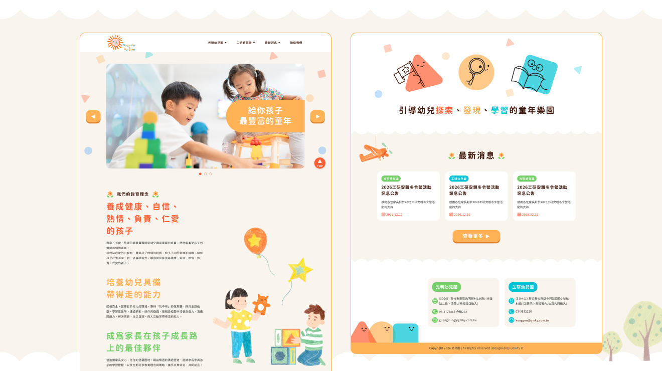 首頁以豐富活潑的色彩為主調,搭配可愛生動的插圖元素,提升整體視覺層次與版面趣味性。在清楚傳達資訊的同時,亦保留童趣與純真的氛圍,營造親切且具吸引力的第一印象。