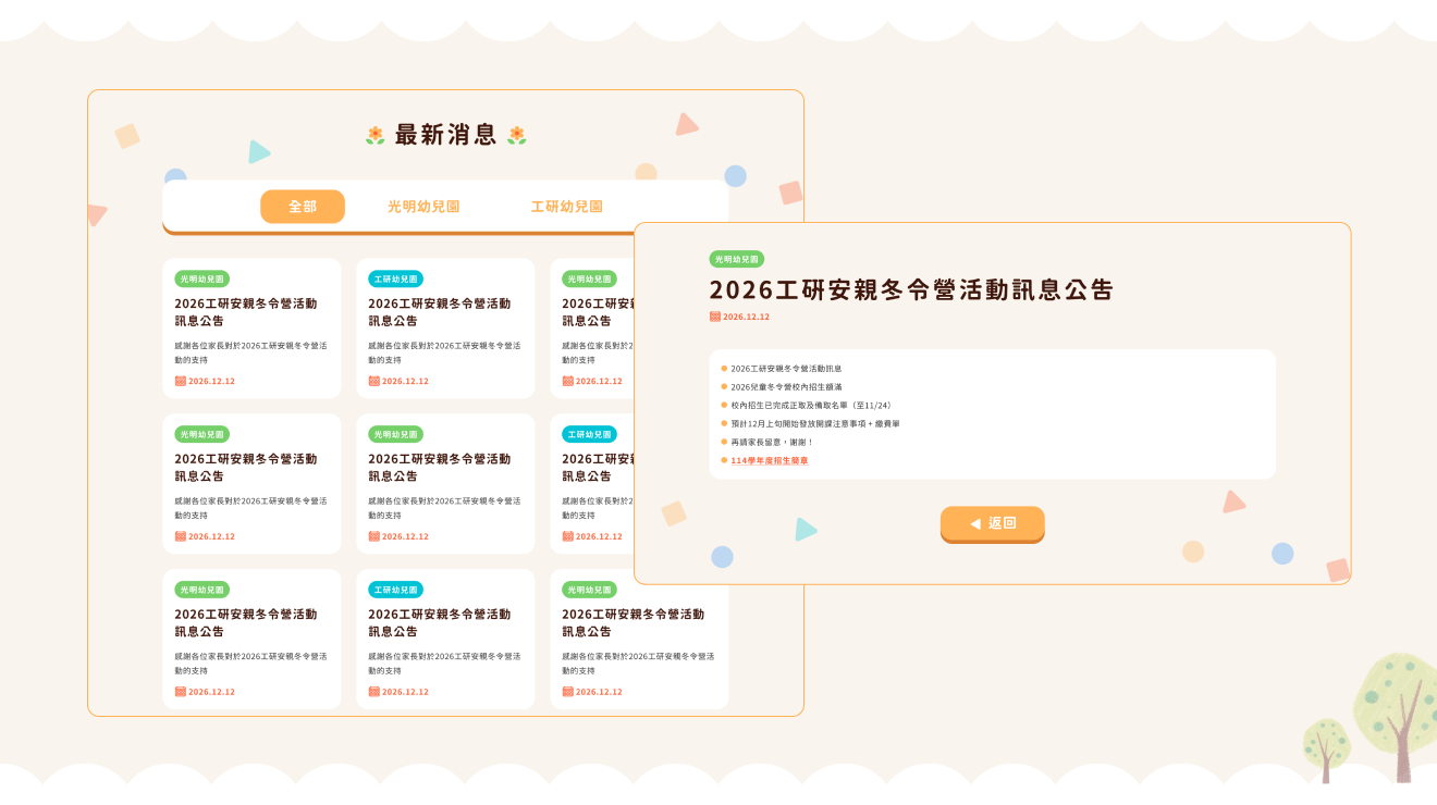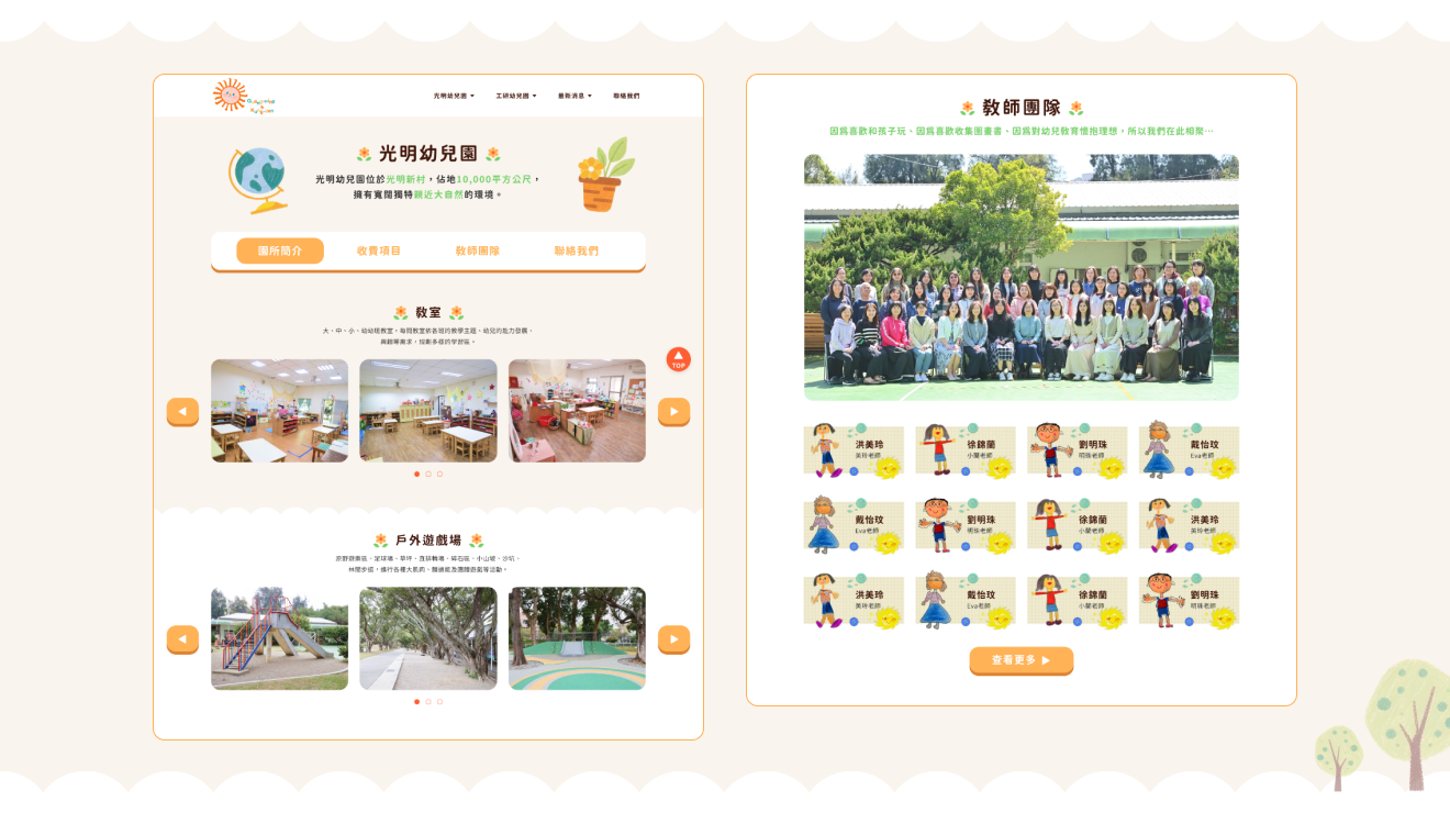 透過完整的園所介紹內容,讓家長能深入了解園所的整體環境、教學設備及師資團隊,提升對園所教育理念與學習空間的信任感。