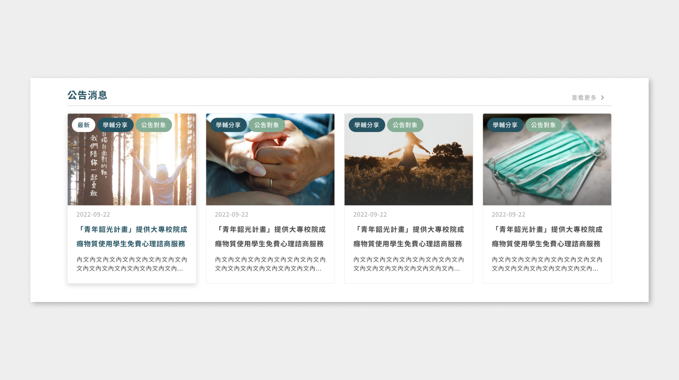以卡片呈現公告消息,讓使用者更方便、快速閱讀到公告資訊。